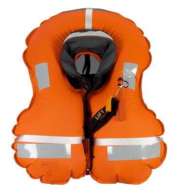 Mit großem Volumen genügt diese Rettungsweste höchsten Sicherheitsansprüchen. Hohe Auftriebseigenschaften wurden mit technischen Innovationen wie dem Inspektionsfenster und dem patentierten Click-Beschlag kombiniert, der wie ein Anschnallgurt im Auto zu handhaben ist. Die Schutzhülle ist aus extrem robusten Nylon-Gewebe gefertigt. Mit textile D-Ring, Spraycap